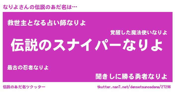 | ヒーロー風カッコイイあだ名 | 『スーパーナリヨ』『慈愛の使者なりよ』 |