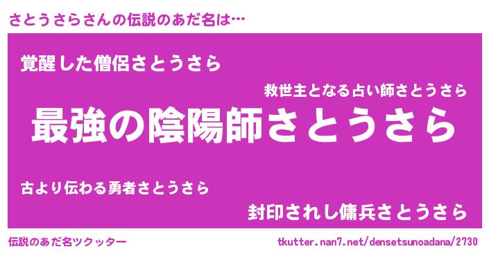 | ヒーロー風カッコイイあだ名 | 『究極戦士サトウサラ』『炎刃騎士サト』 |