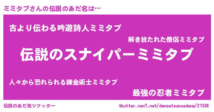 | 胡散臭い通販商品みたいなあだ名 | 『必ず成功する霊験あらたかなお札…その名も「ミミタブ」』 |