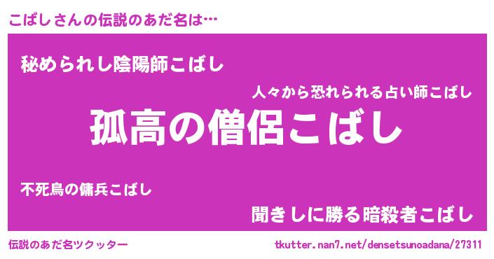 | ヒーロー風カッコイイあだ名 | 『暗黒騎士コバ』『仮面コバダー』 |