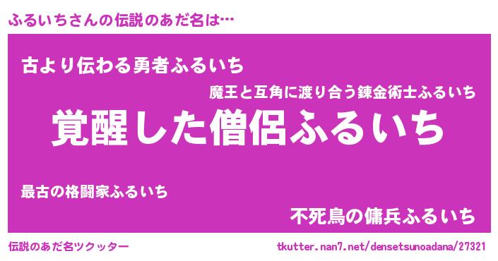 | 意味不明あだ名 | 『つくし科ふるいち属』『自称ふるいち』 |