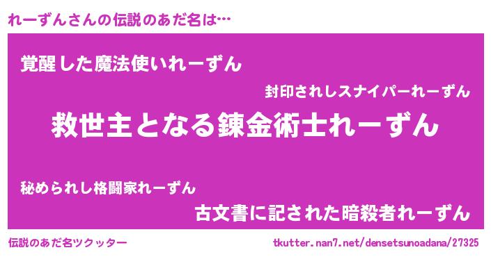 | ヒーロー風カッコイイあだ名 | 『慈愛の使者れーずん』『天弓騎士レー』 |