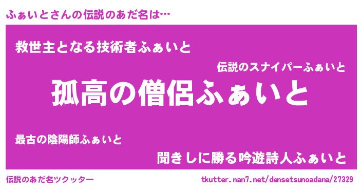| ヒーロー風カッコイイあだ名 | 『黄金騎士ファ』『慈愛の使者ふぁいと』 |