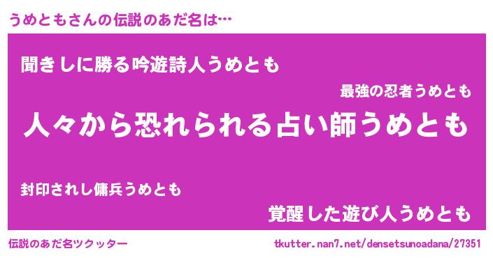 | 欧米人風あだ名 | 『ダニエルうめとも』『ウサインうめとも』 |