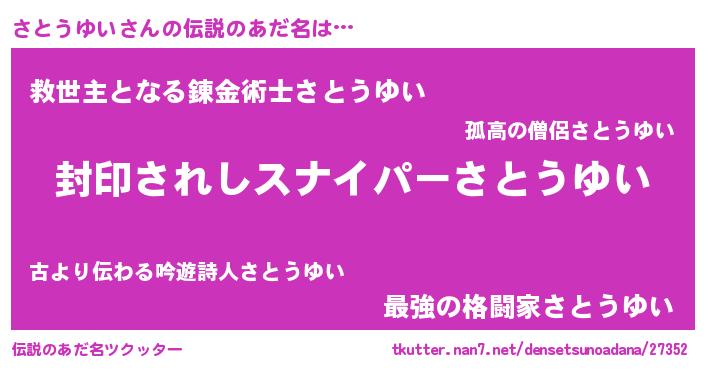 | ファンタジー風あだ名 | 『ゼサトトゥ』『カークサトラー』 |