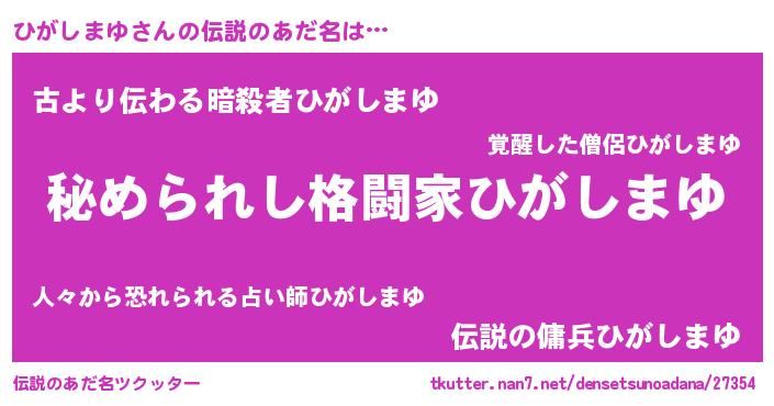 | 男性向けラノベタイトル風あだ名 | 『やはりひがしまゆの青春ラブコメはまちがっている 』 |