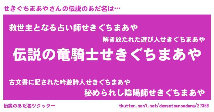 | 恥ずかしいあだ名 | 『セキグチマアヤデラックス』 |