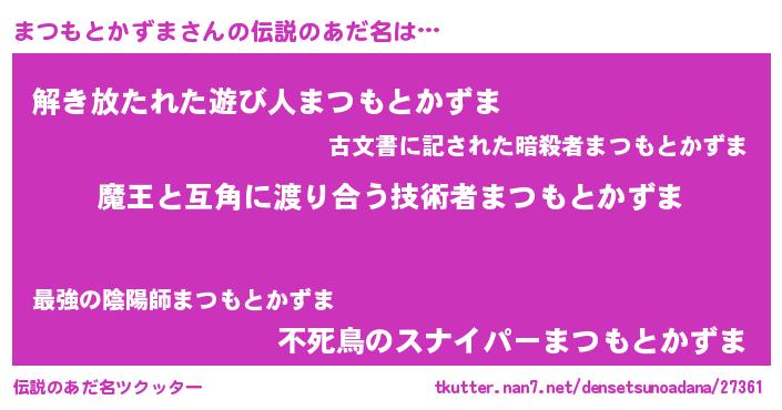 | 意味不明あだ名 | 『住所不定無職まつもとかずま(6歳)』 |