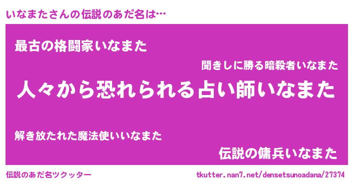 | ヒーロー風カッコイイあだ名 | 『仮面イナダー』『正義の使者いなまた』 |