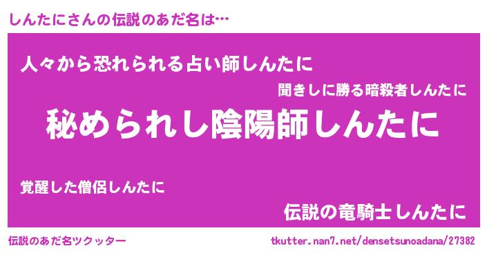 | 女子向けラノベタイトル風あだ名 | 『しんたにの雑貨屋さん』『闇のしんたに』 |