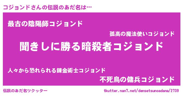 | 意味不明あだ名 | 『永久保存コジョンド』『自称コジョンド』 |