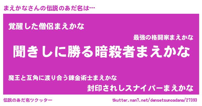 | ヒーロー風カッコイイあだ名 | 『仮面マエダー』『究極戦士マエカナ』 |