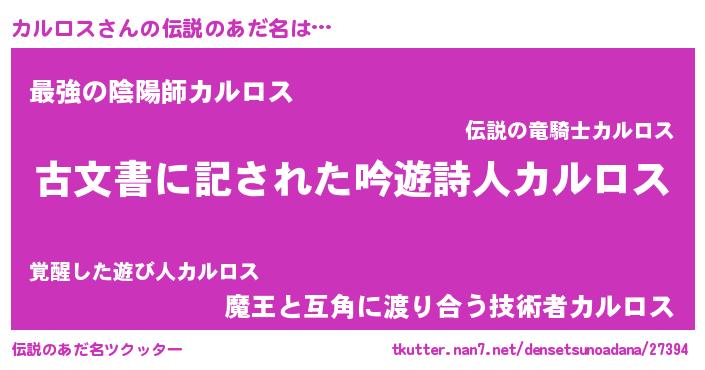 | 意味不明あだ名 | 『永久保存カルロス』『自称カルロス』 |