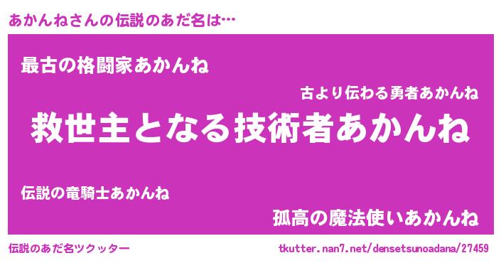 | 男性向けラノベタイトル風あだ名 | 『うちのあかんねが世界を掌握している!』 |