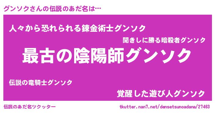 | 意味不明あだ名 | 『住所不定無職グンソク(81歳)』 |