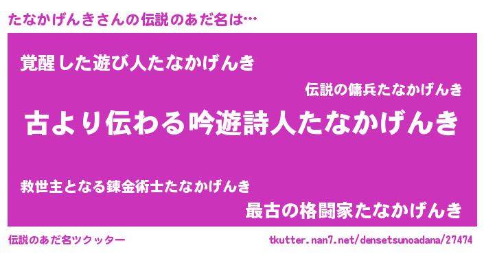 | ポケモン風あだ名 | 『ゼニタナ』『ヒタナカゲンキ』 |