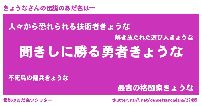 | 意味不明あだ名 | 『永久保存きょうな』『自称きょうな』 |