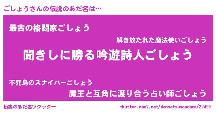 | 意味不明あだ名 | 『永久保存ごしょう』『自称ごしょう』 |