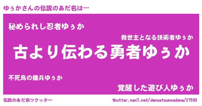 | 意味不明あだ名 | 『なめこ科ゆぅか属』『永久保存ゆぅか』 |