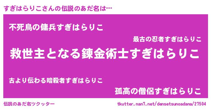 | ヒーロー風カッコイイあだ名 | 『天空の使者すぎはらりこ』 |