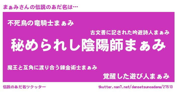| ヒーロー風カッコイイあだ名 | 『ウルトラまぁみマン』『スーパーマァミ』 |
