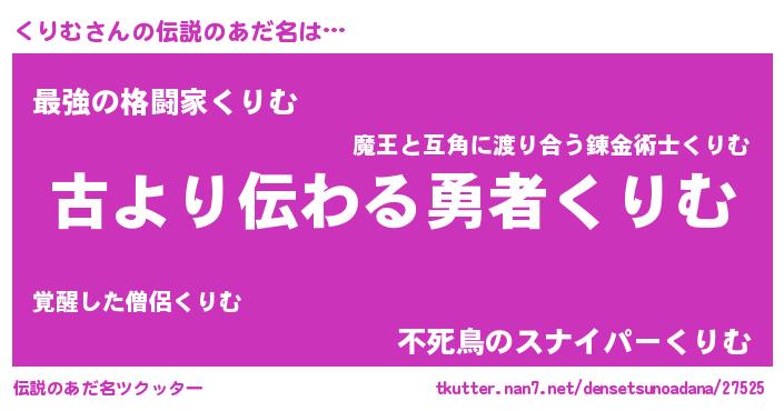 | 男性向けラノベタイトル風あだ名 | 『くりむという概念が存在しない退屈な世界 』 |
