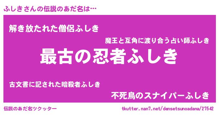 | ヒーロー風カッコイイあだ名 | 『サイバー戦士フシキ』『黄金騎士フシ』 |