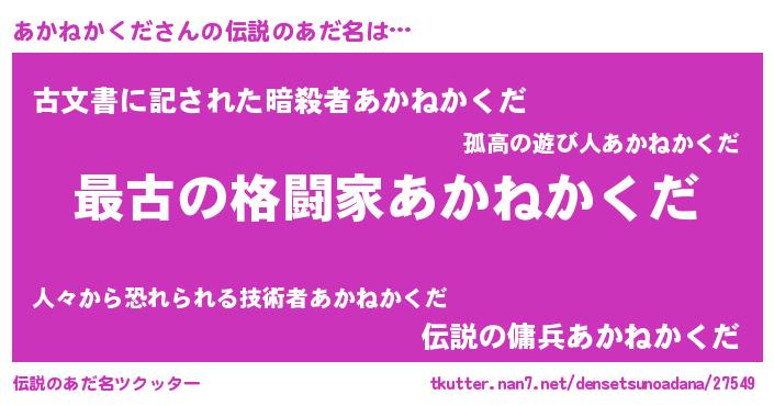 | ファンタジー風あだ名 | 『エターナルアカネカクダー』 |