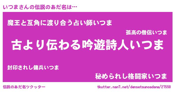 | 意味不明あだ名 | 『自称いつま』『たけのこ科いつま属』 |