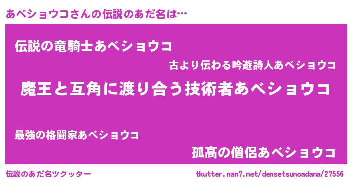 | 欧米人風あだ名 | 『アンジェラ・あべショウコ』 |