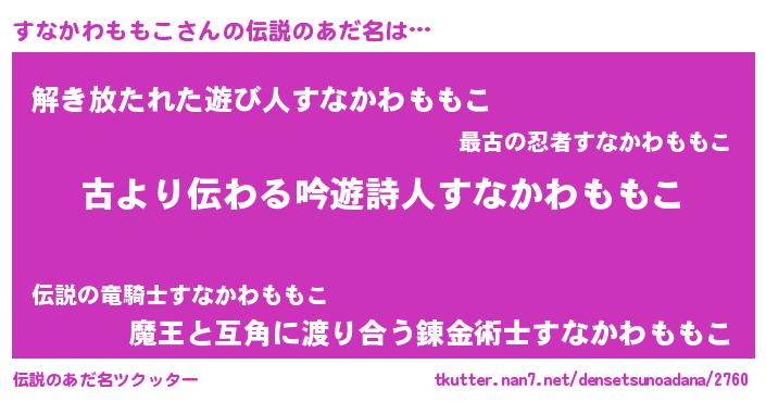 | ヘコむあだ名 | 『すなかわももこ(小並感)』『すなっぺ』 |