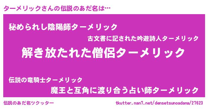 | ファンタジー風あだ名 | 『カークターラー』『ゼタートゥ』 |