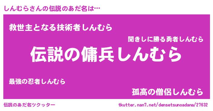 | ヒーロー風カッコイイあだ名 | 『スーパーシンムラ』『仮面シンダー』 |