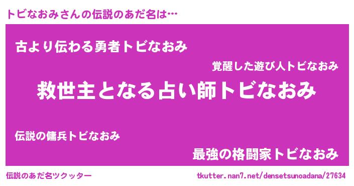 | ポケモン風あだ名 | 『トックウザ』『ゼニトビ』 |