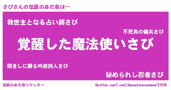 | 男性向けラノベタイトル風あだ名 | 『Re:さびから始める異世界生活』 |