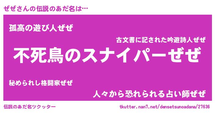 | ファンタジー風あだ名 | 『ゼゼフェル』『ゼゼゼトゥ』 |