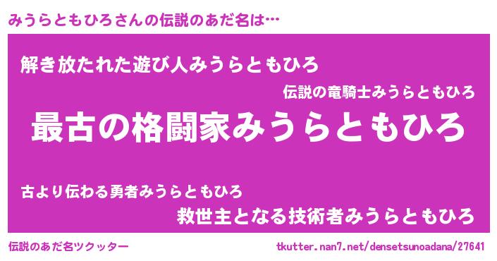 | 意味不明あだ名 | 『住所不定無職みうらともひろ(12歳)』 |