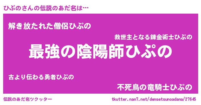 | 女子向けラノベタイトル風あだ名 | 『ひぷのの婚約者』『ひぷのは平凡を望む』 |