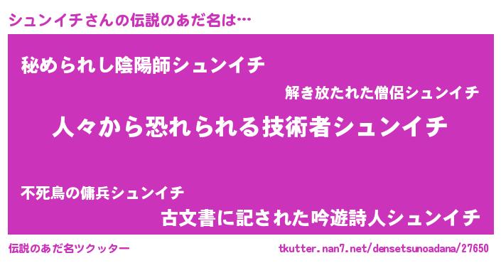 | 意味不明あだ名 | 『眠気覚ましガムシュンイチ味』 |