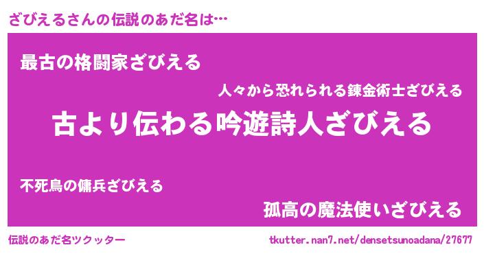 | 男性向けラノベタイトル風あだ名 | 『ざびえるという概念が存在しない退屈な世界 』 |