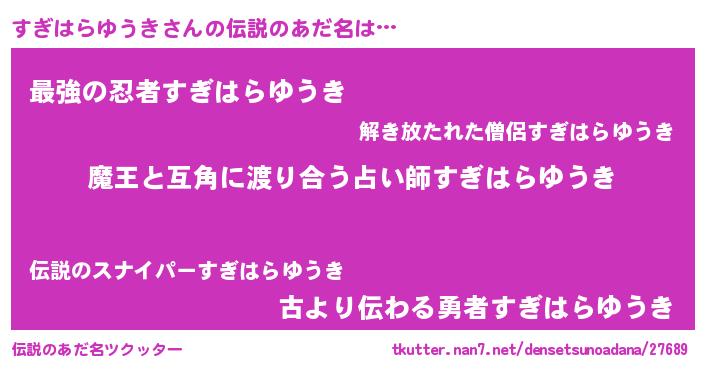 | 女子向けラノベタイトル風あだ名 | 『すぎはらゆうき恋絵巻』 |
