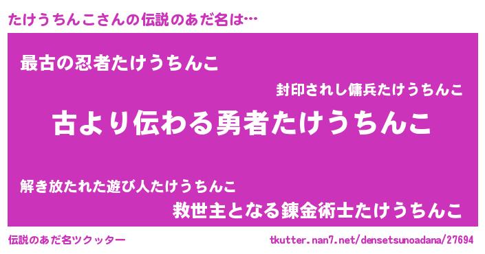 | 意味不明あだ名 | 『永久保存たけうちんこ』 |