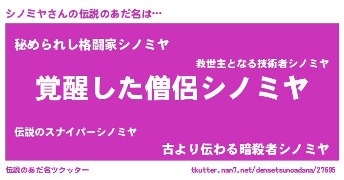 | 男性向けラノベタイトル風あだ名 | 『この素晴らしい世界にシノミヤを!』 |