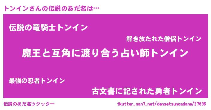 | ヒーロー風カッコイイあだ名 | 『慈愛の使者トンイン』『仮面トンダー』 |