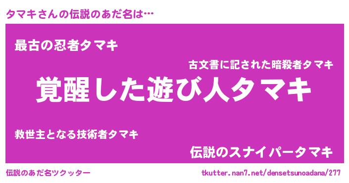 ヒーロー風カッコイイあだ名 | 『炎刃騎士タマ』『ウルトラタマキマン』 |