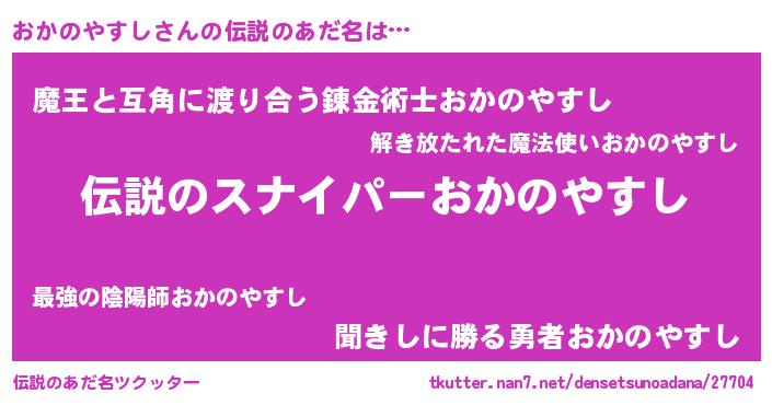 | 女子向けラノベタイトル風あだ名 | 『おかのやすしなんてお断りですっ。』 |