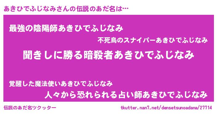 | 意味不明あだ名 | 『住所不定無職あきひでふじなみ(47歳)』 |