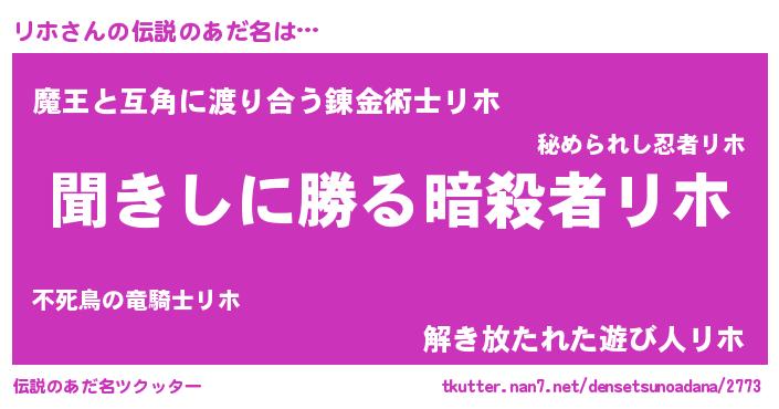 | ファンタジー風あだ名 | 『リホディッシュ』『ヴァルリホーナ』 |