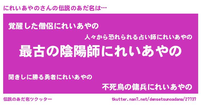 | ファンタジー風あだ名 | 『エターナルニレイアヤノー』 |