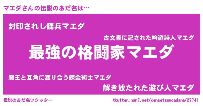 | ファンタジー風あだ名 | 『エターナルマエダー』『ゼマエトゥ』 |